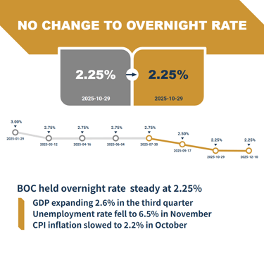 BOC held overnight rate steady at 2.25%
