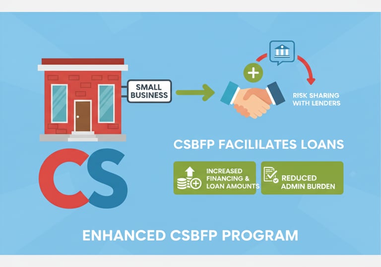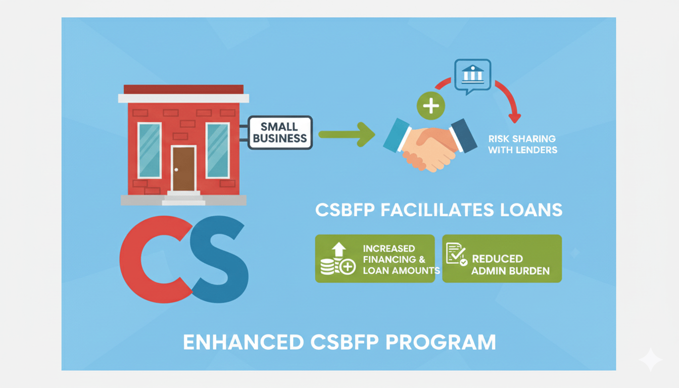 CSBFP facilitates easier small business loans by sharing risk with lenders. The enhanced program further supports this by offering additional financing products, increased loan amounts, and reduced administrative burden.